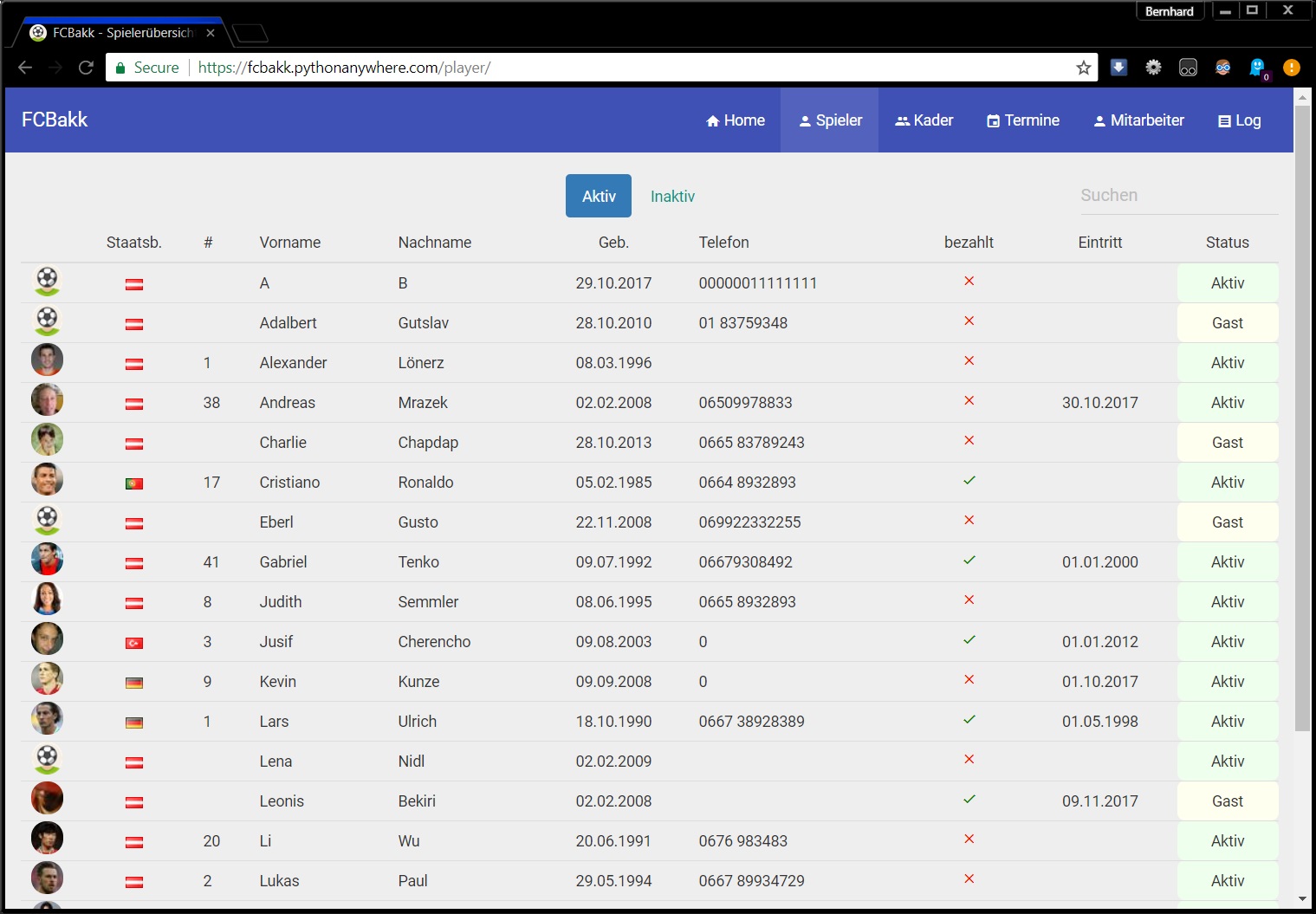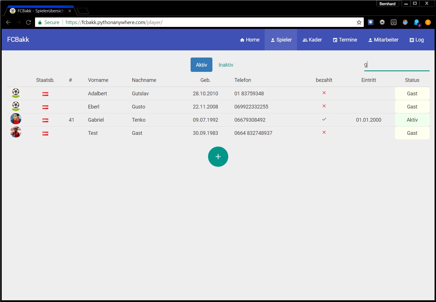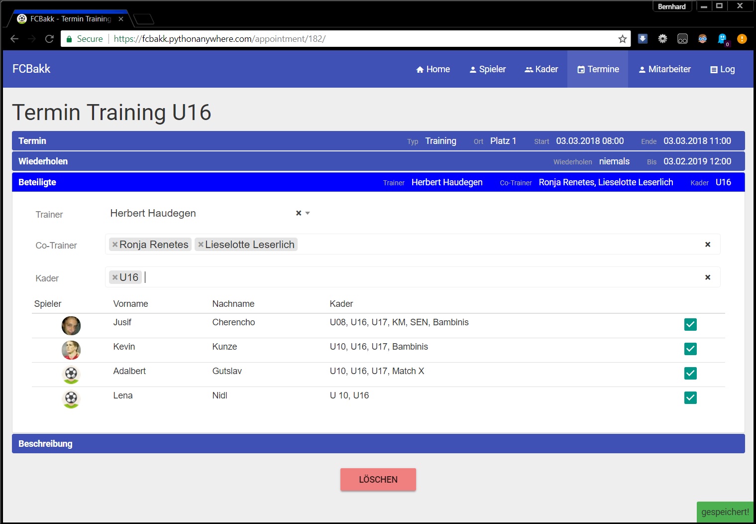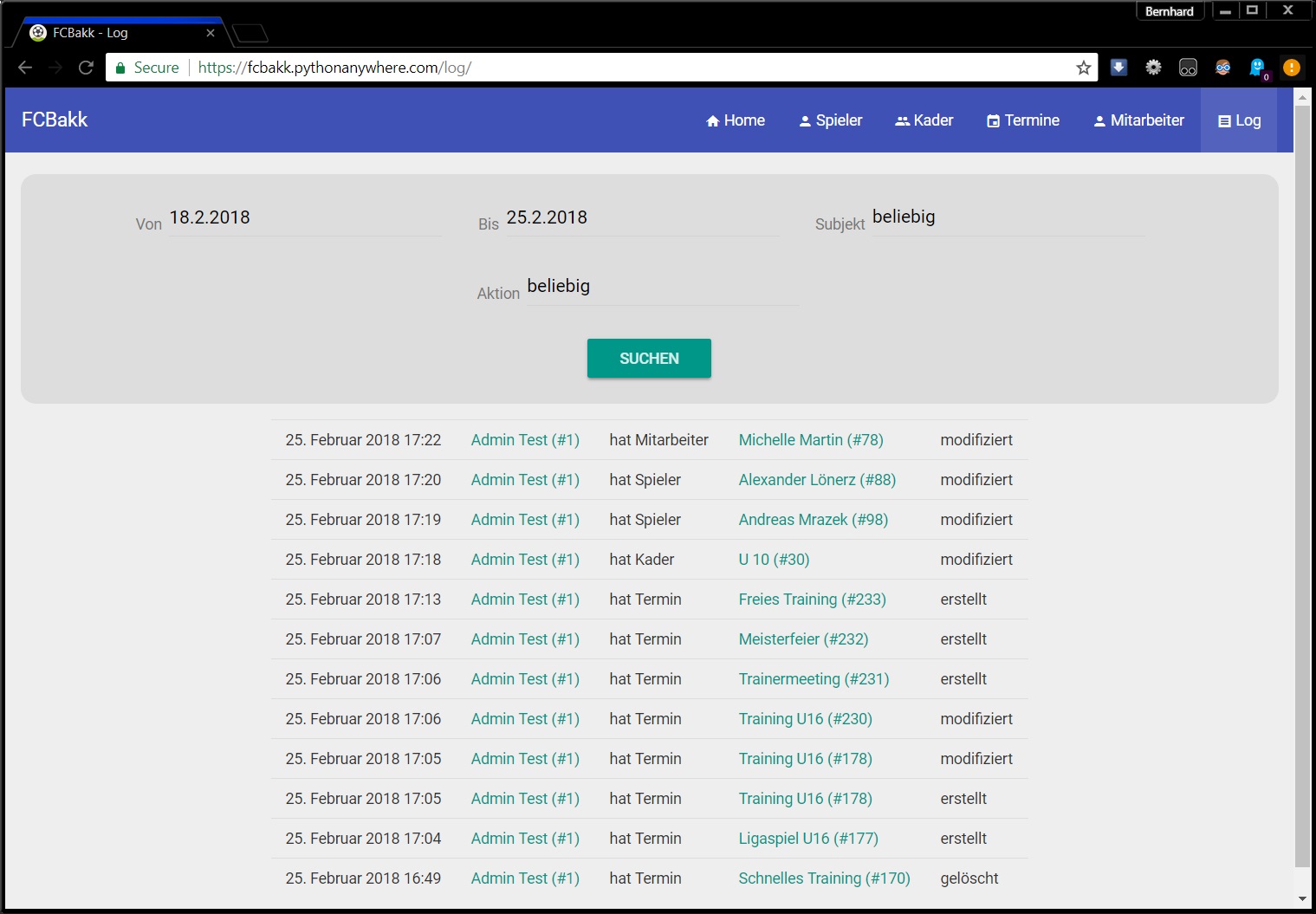 FCBakk is a management system for sports clubs, consisting of a web application with a REST API and an Android app for trainers on the field. I built the web application part, which is intended for office staff to input data effectively.