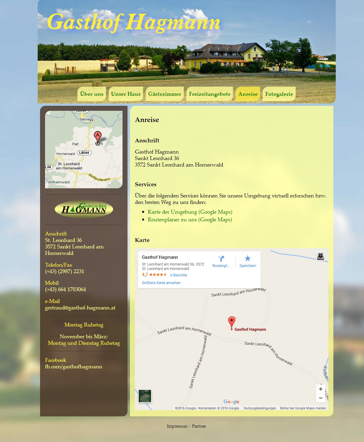 gasthof-hagmann.at is the homepage of Gasthof Hagmann, a restaurant and family business.