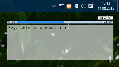 A collection of desktop and development tools including a time progress bar, a reverse time count and notes. The tools are comfortably available via the tray icon.
